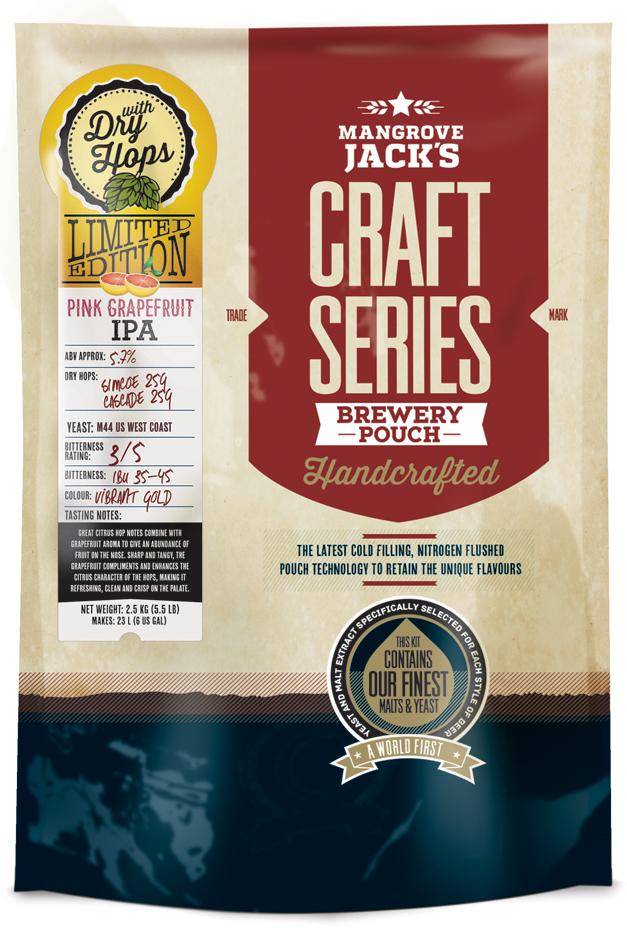 | Pink Grapefruit IPA Inspired by Brew Dog's Elvis Juice Citrus IPA, this contains great citrus hop notes combined with grapefruit aroma to give an abundance of fruit on the nose. Sharp and tangy, the grapefruit complements and enhances the citrus character of the hops, making it refreshing, clean and crisp on the palate.