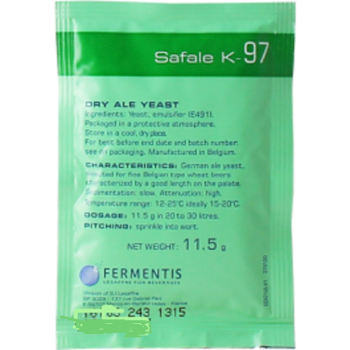 | Safale K-97 A German ale yeast, selected for fine Belgian type wheat beers characterised by good length on the palate.